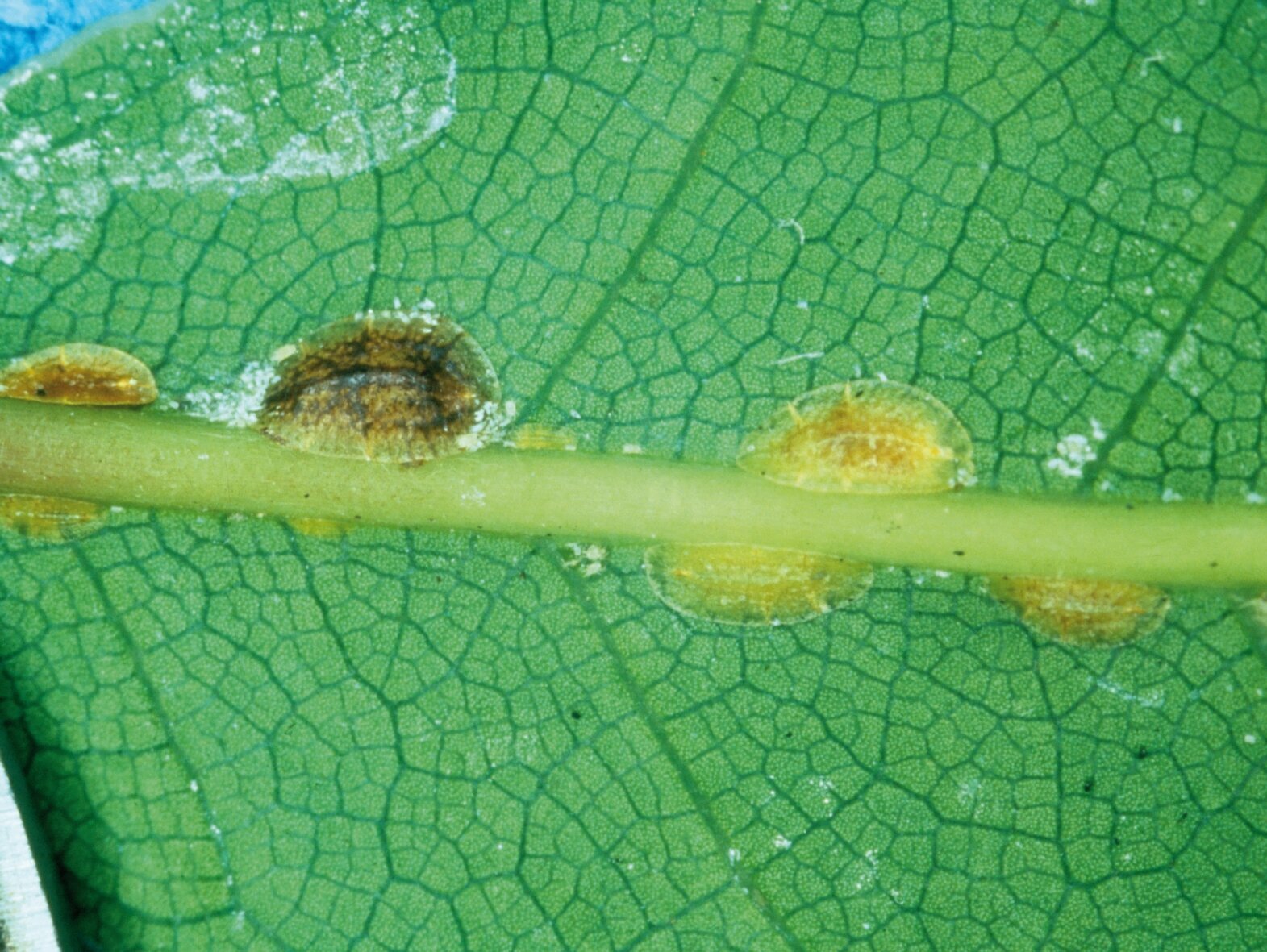 - Leaves with dark, dirty patches